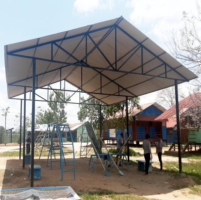 arcosdemetal,subeybaja, así como la construcción de locales con columnas y bigas de metal, techo de calamina que protegerán de las inclemencias del tiempo, también la construcción de asientos de concreto armado para el descanso delasfamiliasqueacompañanalosmenores,cercodemadera,entreotras obrasdearte.