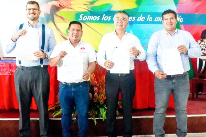 El gobernador Dr René ChávezSilvanoenrepresentación delGobiernoRegionaldeLoreto, el presidente de la Sociedad Nacional de Industrias Ing.JesúsSalazarNishi,elpresidente de la Cámara de Comercio de Loreto Walter Boria JessonyelacaldedelaltoTapiche Héctor Vargas Villacorta estamparon sus rubricas en los convenios, sellando así el compromiso entre las institucionesinvolucradas.
