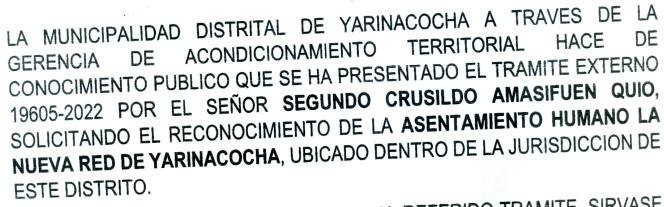 Pretendencontraermatrimoniocivil,enestaMunicipalidaddelCentroPobladoSanJosédeYarinacocha,loqueconozcancausalesde impedimento,podrándenunciarconformeaLey San José deYarinacocha 15 de diciembre del 2022.