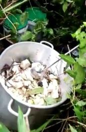 cidad con contenido en ellas sustancia liquida parduzca, que se encontraba hirviendo con adherencias de alcaloide decocaína.