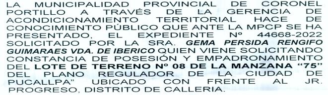 VivesenlaMz.HLt.3dela calle 17 del asentamiento humanoIvánSicky,eneldistrito de Manantay También pueden comunicarse directamente con él, llamándolo al número 977406824. A él le diagnosticaron glaucoma terminalalavista.(MillerMurrieta)