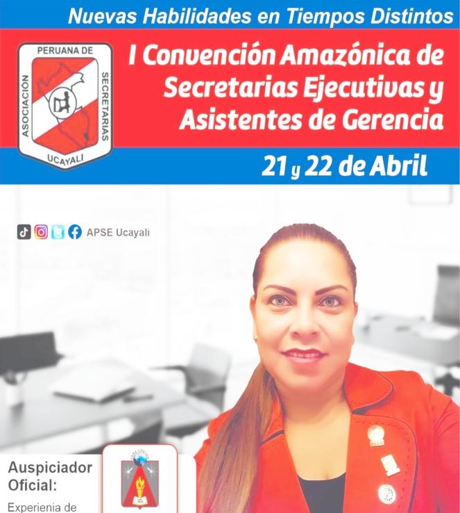 Mañanaviernes21ysábado 22 se iniciará en nuestraciudadlaPrimeraConvención° Amazónica de Secretarias Ejecutivas y Asistentes de Gerencia, en el auditorio del Colegio deContadoresdeUcayali. La presidente de la AsociaciónPeruanadeSecretarias de Ucayali Eva PatriciaReyesMeza,dioaconocer que están llegando destacados expositores, quienesimpartiránsusconocimientosalassecretariasyasistentesdegerenciadeUcayali La inauguración del eventolorealizarálapresidenta delaCámaradeComercio IndustriayTurismodeUcayali, Lic. Nancy Elizabeth García, la primera ponencia Empowermet y LiderazgoSecretarial,estaráa cargo de José Antonio Gartner Saettone, la segunda ponencia Gestión de la Calidad en la AtenciónSecretarialacargode Juan José Palomino