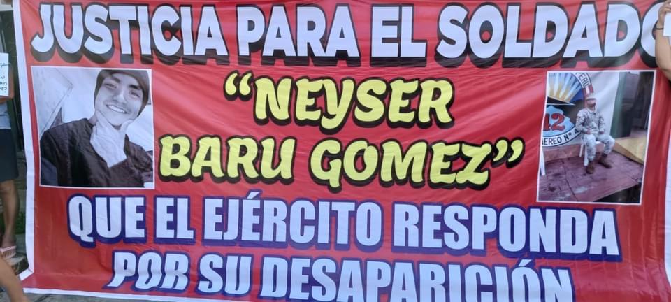 NeyserBaruGómezÁngulo(23),seencuentraencalidaddedesaparecidodesde el pasado 30 de noviembredel2022,trasservirenlabasemilitardeSan Antonio del Estrecho, ubicadoenlaprovinciadePutumayo.