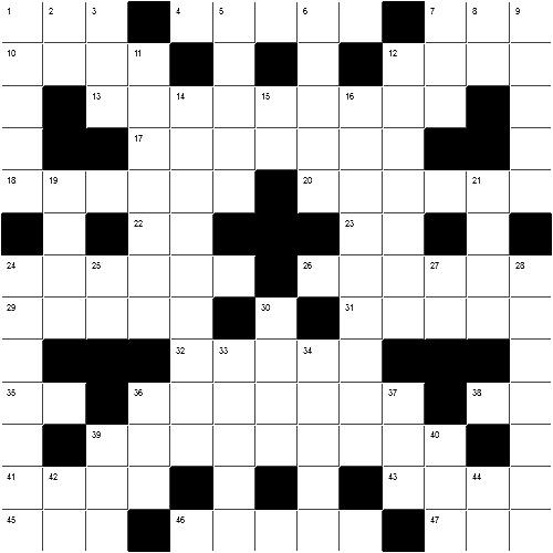 24 Garboso o gallardo. 26 Arma arrojadiza semejante a una lanza pequeña y delgada (pl.). 29 Preposición "encima". 31 De color azul claro (fem.). 32 Sarmiento estéril de las vides. 35 Negación. 36 Navarrisco. 38 Río del norte de Italia. 39 Relativo al poeta Horacio. 41 La sangre de los dioses en los poemas homéricos. 43 Agarrar. 45 Monarca.