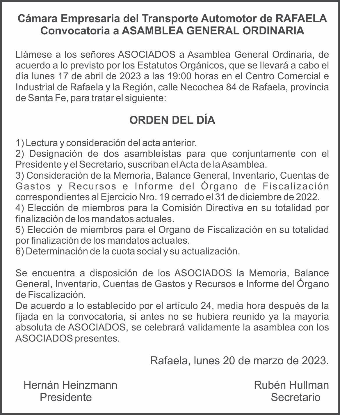 Por otro lado, ingresaron dos notas: de la Sociedad Rural de Rafaela elevando consideraciones sobre el reciente fallo del Juzgado Civil de la 2ª NominacióndeRafaelaconlanulidaddel artículo 4º de la ordenanza 5331 del 2/12/2021, que regula la aplicación de fitosanitarios en la ciudad; y de Claudio Vivas (socio gerente de la nueva Empresa CCR S.R.L.), solicitando una reunión a la mayor brevedad destinada a informar y evacuar cualquier duda en cuanto al impacto ambientalqueelfuncionamiento de un crematorio (se construyó enlaRuta70,pasandolavariantedelaRuta34,conlafactibilidad pero sin la habilitación municipal) pueda generar. También ingresóuninformelegislativodela Cámara de Diputados de la Provincia de Santa Fe.