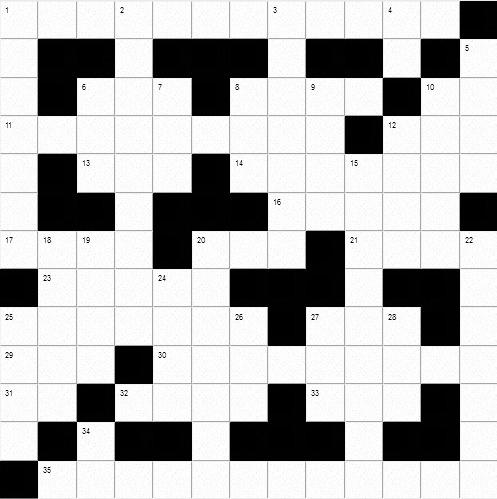 14 Aro hecho con una vara de madera flexible. 16 Anta (mamífero). 17 Quitan algo raspando. 20 Extremidad de los miembros inferiores. 21 Une con hilo y aguja. 23 Interruptor de electricidad. 25 Haré ojales en la ropa. 27 Yerno de Mahoma. 29 Uno de los hijos de Noé. 30 Calidad de acre o picante, áspero de las cosas, especialmente al gusto o al olfato. 31 ("El maravilloso mago de ...") Famosa novela de Lyman Baum. 32 Mezcla metales fundiéndolos. 33 En Psicología, "yo". 35 Se hallarán presentes en un acontecimiento, espectáculo, etc.