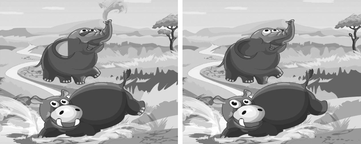 Solución: 1) Cambia la oreja del elefante. 2) Cambian los ojos.