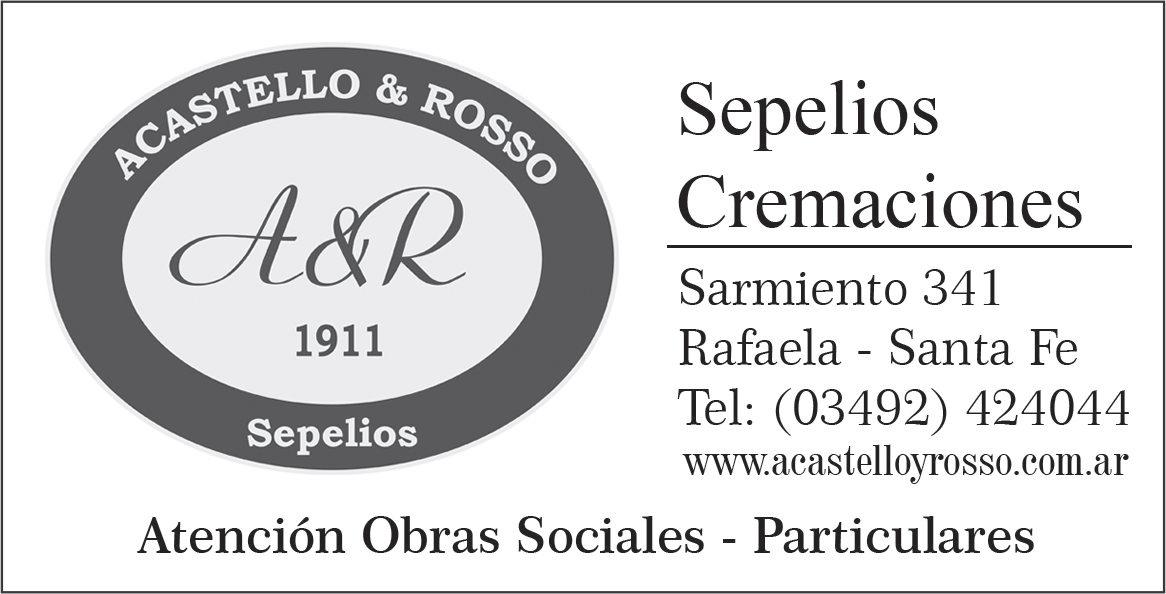 Falleció el 22/09 a la edad de 77 años. Sus restos serán cremados, previo oficio religioso el 22/09 a las 17:30 hs. en sala velatoria. Servicio: Acastello & Rosso.