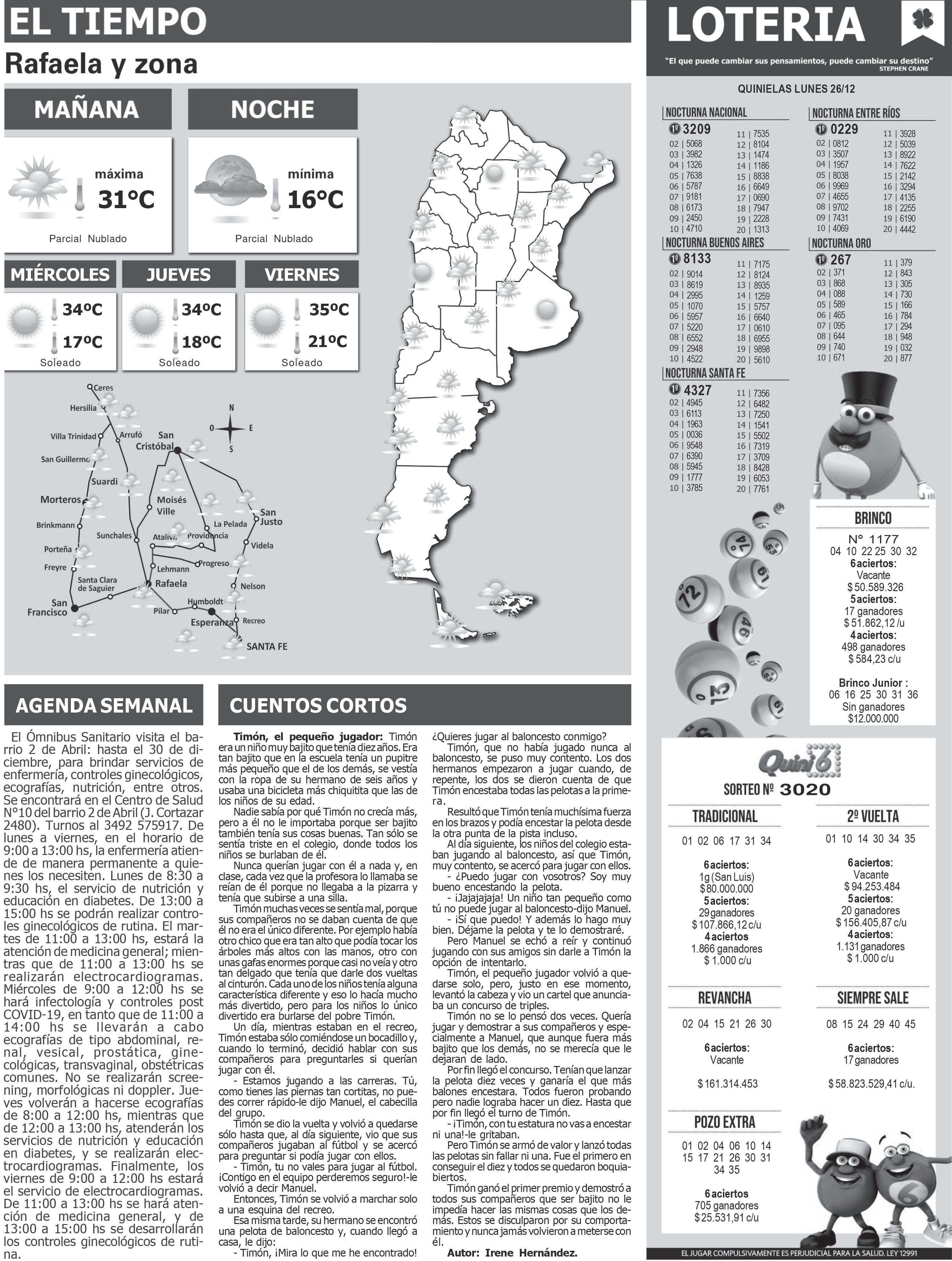 Falleció el 23/12 a la edad de 10 años en Santa Clara de Buena Vista. Sepelio: 24/12 a las 11:00 hs en el Cementerio de Santa Clara de Buena Vista, previo oficio religioso en Sala Velatoria. Servicio: Bonetti Hnos.