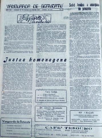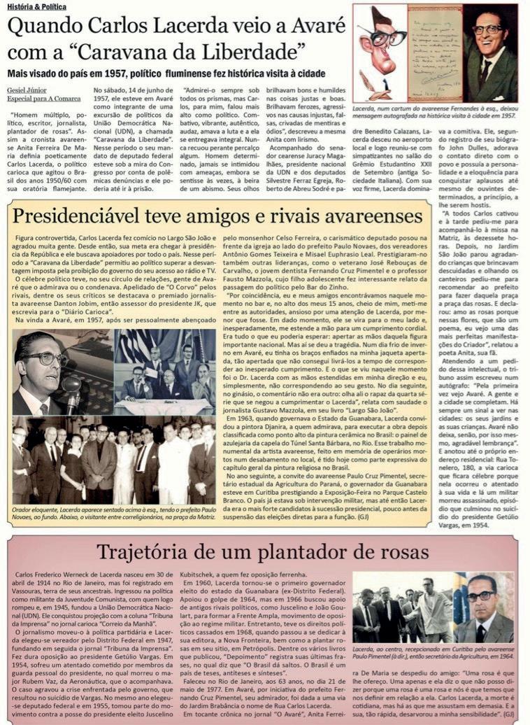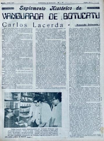 A imprensa botucatuense destacando o destaque político de Carlos Lacerda: desde sua liderança como porta-voz do movimento comunista até sua liderança civil que viabilizou a queda de João Goulart e impediu a comunização do Brasil (Vanguarda de Botucatu – Junho/1977)