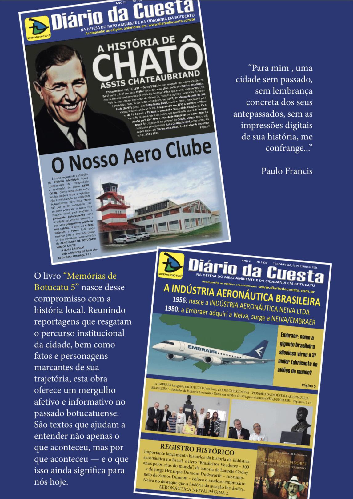 • Cronista e pesquisador, membro da Academia Botucatuense de Letras, é autor de 55 livros sobre a história regional.