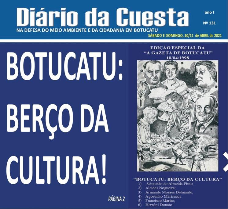 “Vamos novamente, de forma pioneira, resgatar a realização de uma FEIRA DE LIVRO?!? Agora de forma mais ampla, abrangendo os municípios do POLO CUESTA! Botucatu estaria retomando, de forma positiva, sua liderança cultural: destacando os escritores da região e exaltando as belezas naturais da CUESTA...”