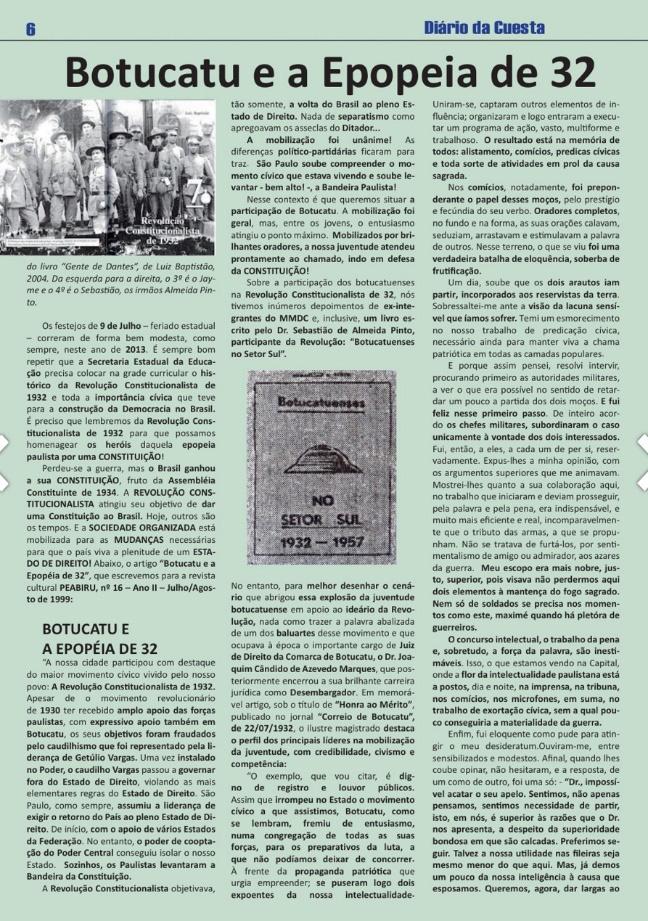 - O Dr. Sebastião de Almeida Pinto, médico e professor, registrou a atuação dos botucatuenses na Epopeia de 32, com o livro “Botucatuenses no Setor Sul”, além de mostrar a vida comunitária no “No Velho Botucatu”...