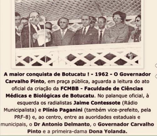 1– Importante registrar a atuação parlamentar e política de Dante Delmanto. Primeiramente para Botucatu: com a Escola Industrial e os Grupos Escolares “Raphael de Moura Campos”e “Dom Lucio Antunes de Souza”, além do Grupo Escolar do Lageado. O trabalho de Dante Delmanto, como ex-deputado, advogado e amigo do Governador Carvalho Pinto na conquista da nossa Faculdade de Medicina: o ex-deputado estadual constituinte Dante Delmanto e os deputados estaduais Abreu Sodré, Jaime de Almeida Pinto e Ciro Albuquerque foram os grandes defensosres da criação da FMB –Faculdade de Medicina de Botucatu.