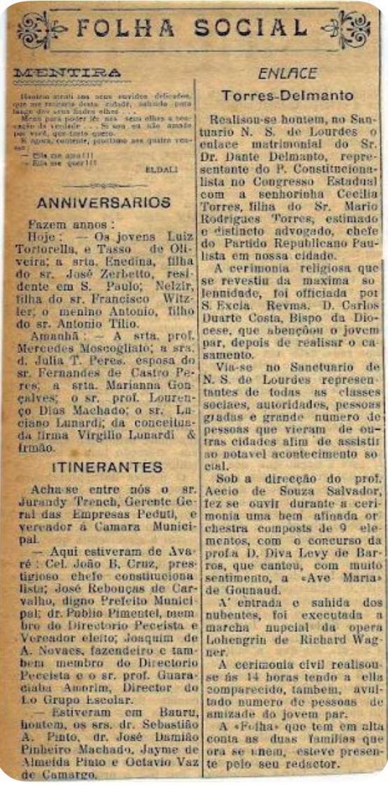 – Dante Delmanto tinha sido eleito com a maior votação para Deputado Estadual na Constituinte Estadual de 1934 e, também, sendo o mais novo deputado eleito. Em 1936, a cidade de Botucatu presenciava um evento social expressivo para a comunidade:
