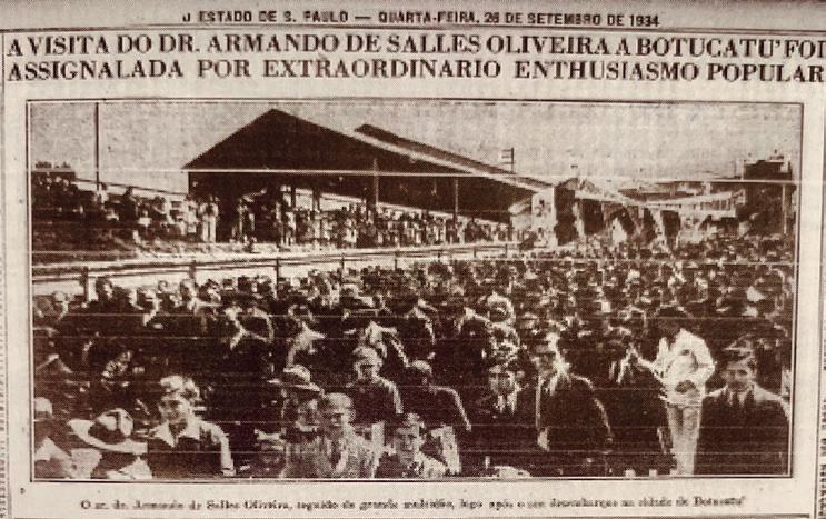 – Ficou registrada a grande manifestação dos botucatuenses à presença do Governador Armando Salles de Oliveira e seus partidários na concentração defronte ao Teatro Espéria e na Estação Sorocabana