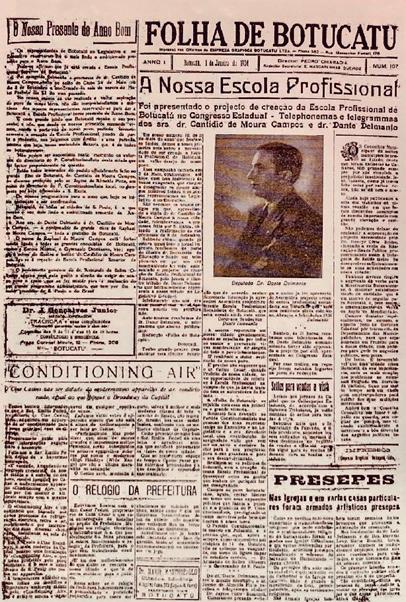– A criação da Escola Profissional (ESCOLA INDUSTRIAL) no governo de Armando de Salles Oliveira. Trabalho do deputado Dante Delmanto junto ao botucatuense, o prof. Cantídio de Moura Campos, Secretario da Saúde e Educação.