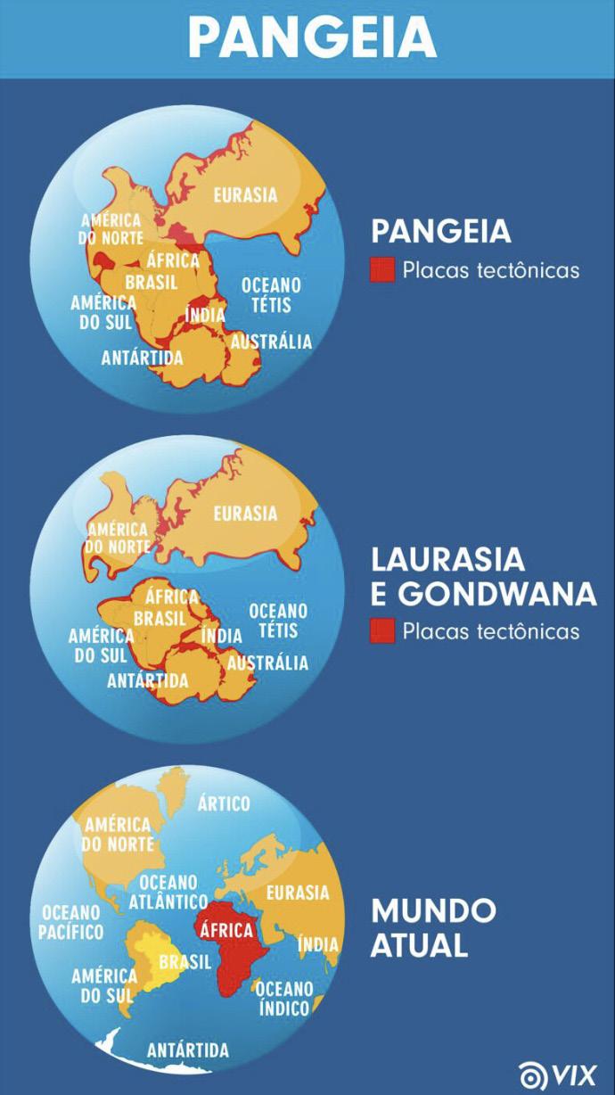 professor de paleontologia do Departamento de Zoologia do IB de Botucatu. Há décadas, a ciência trabalha com as hipóteses que os continentes eram unidos e estavam ainda parcialmente cobertos por águas marinhas . A separação que, de acordo com as pesquisas, continua acontecendo a taxas variáveis de dois a seis centímetros por ano que teria ocorrido há cerca de 65 milhões de anos . Antes, porém, o mar já havia secado , sendo recoberto por rochas depositadas em ambiente desértico