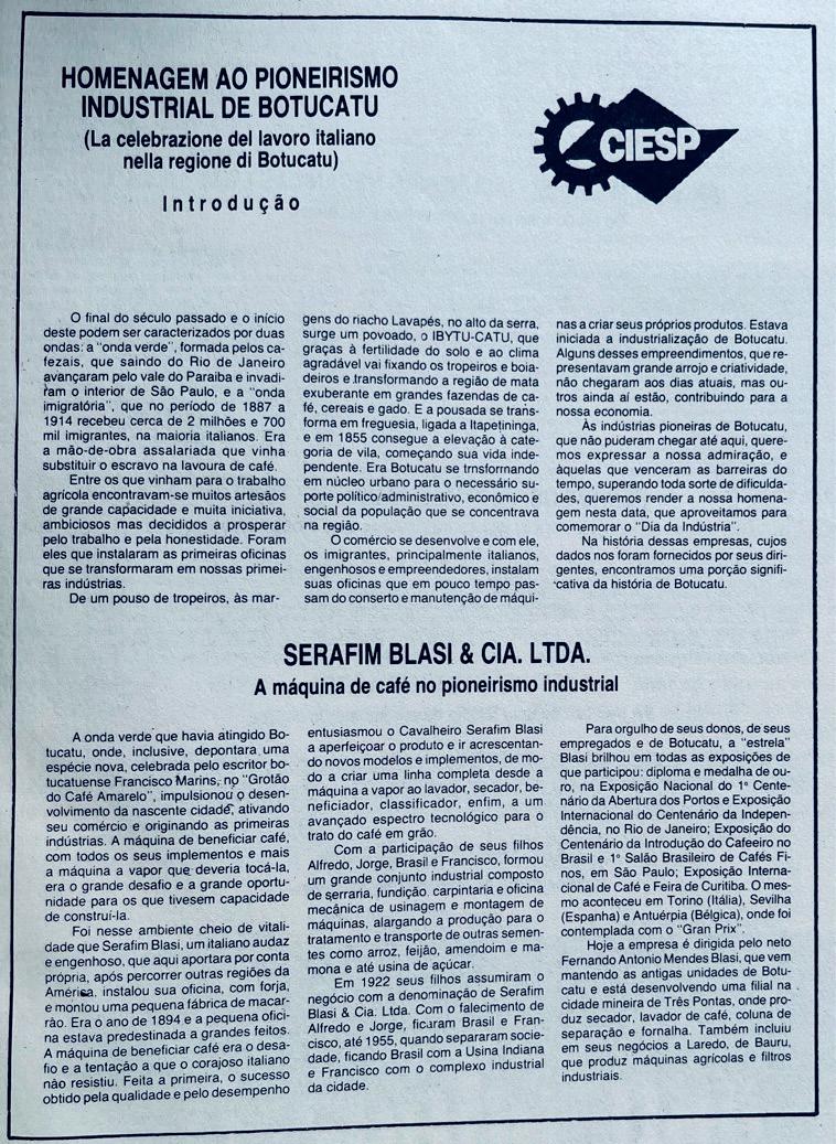 Na 2ª. edição do livro “Memórias de Botucatu I”, de 1995, no capítulo “Ciclos Industriais” e na revista Peabiru, nº 09, de maio/junho/1998, no artigo “Os Pioneiros da Industrialização em Botucatu: Os Imigrantes Italianos”, já preparávamos a estrutura desta matéria