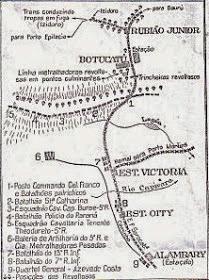 Mapa da região, desenhado durante a revolução de 1924, quando os revoltosos fugiram de São Paulo