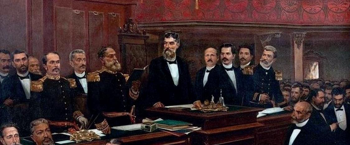 A Republica, em 1889, nasceu de maneira assaz curiosa, muito simples mesmo, quasi de surpresa. Ninguém esperava. Os boatos alarmantes de uma conspiração de Oficiais do Exército liderados pelo Marechal Deodoro da Fonseca, anoavam na boca do povo, desde muito tempo. No dia anterior ao da proclamação da República, estalava o movimento: sublevavam-se o 1ºRegimento de Cavalaria e, logo em seguida, o 2º Regimento de Campanha, os alunos da Escola Militar da Praia Vermelha, da Escola Superior do Exército, marcharam todos para o Campo de Santana. Tudo isto, na calada da noite, enquanto a cidade indiferente ao movimento dormia.