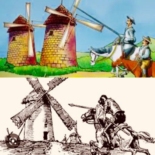 3 – Dom Quixote “lê” os moinhos de vento como se fossem gigantes e, logo depois, como se fossem moinhos de vento mesmo...