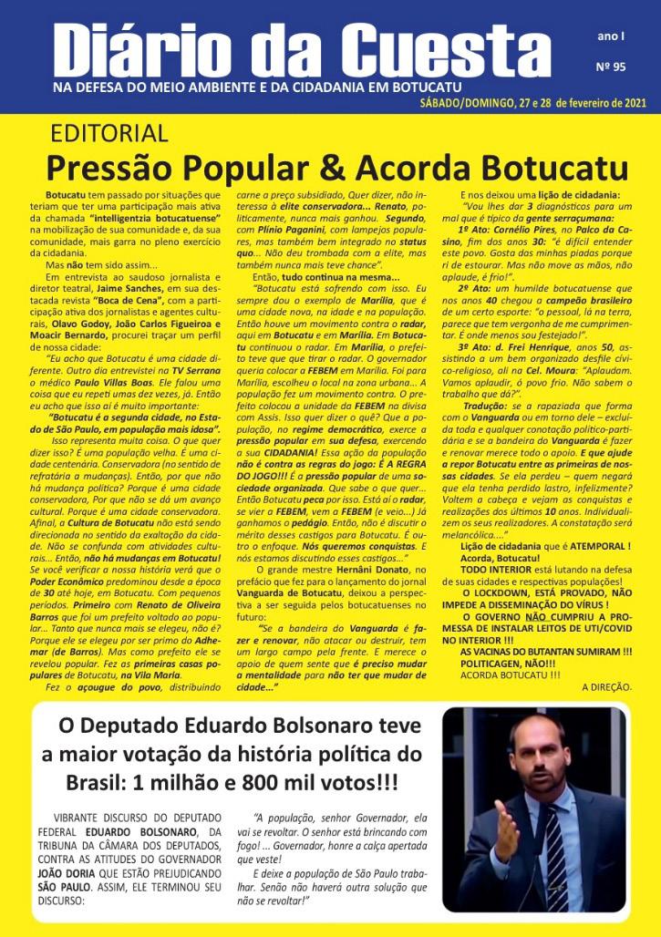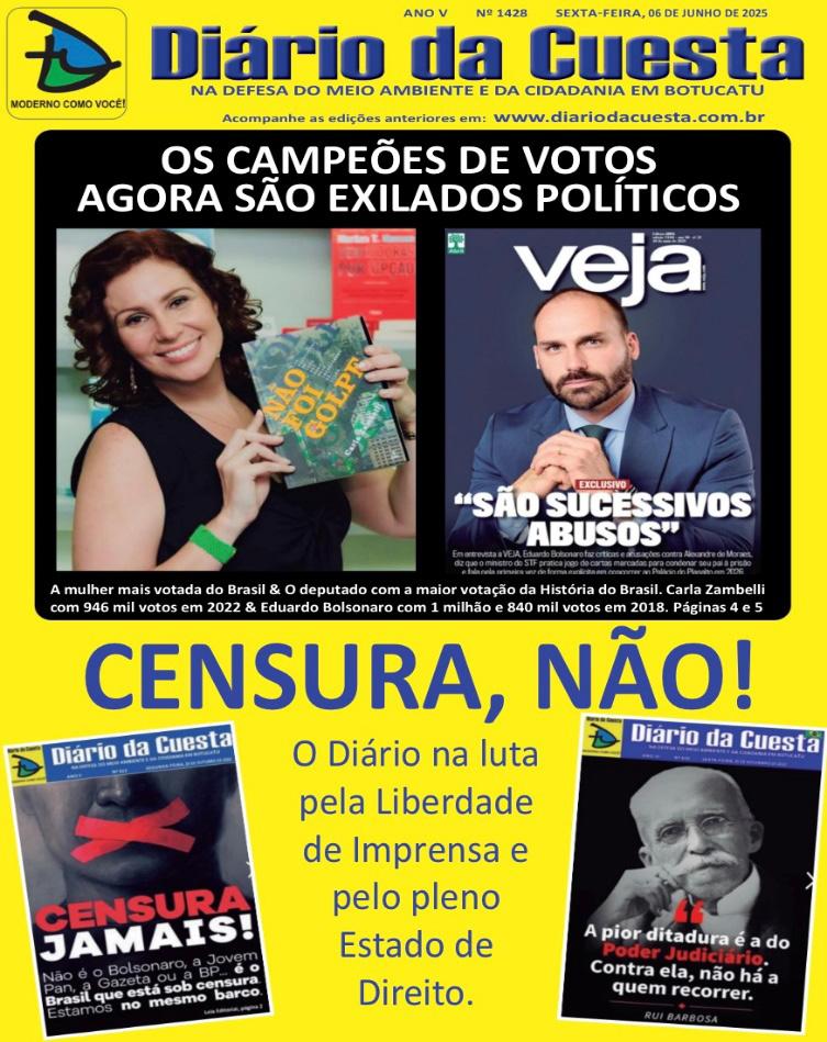O Diário da Cuesta não se responsabiliza por ideias e conceitos emitidos em artigos ou matérias assinadas, que expressem apenas o pensamento dos autores, não representando necessariamente a opinião da direção do jornal. A publicação se reserva o direito, por motivos de espaço e clareza, de resumir cartas, artigos e ensaios.
