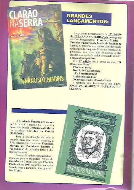 Na parte cultural, Francisco Marins promoveu, juntamente com Hernâni Donato, a realização da 1ª Reunião Ordinária da ACADEMIA PAULISTA DE LETRAS, fora da capital, juntamente com a ABL – ACADEMIA BOTUCATUENSE DE LETRAS.