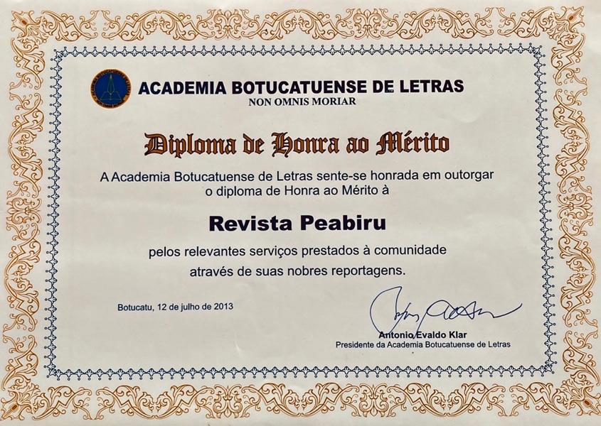 Em 1997 surgia a Revista Botucatuense de Cultura – PEABIRU, com sua edição nº 01, de janeiro/fevereiro de 1997. Prefaciada pelo professor José Celso Soares Vieira, iniciava sua caminhada peabiruana a favor de Botucatu.