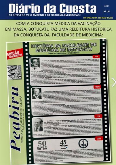A MAIOR CONQUISTA DE BOTUCATU: A FACULDADE DE MEDICINA !!! Diário da Cuesta NA DEFESA DO MEIO AMBIENTE E DA CIDADANIA EM BOTUCATU ANO III Nº 851 SÁBADO E DOMINGO , 29/30 DE JULHO DE 2023 Acompanhe as edições anteriores em: www.diariodacuesta.com.br 30 ANOS DO LIVRO PIONEIRO HISTÓRIA DA MEDICINA EM BOTUCATU - 1993 – 2023 1 MISERICÓRDIA BOTUCATUENSE1893 2 CASA DE SAÚDE SUL PAULISTA - 1928 3 FCMBB1958/1962