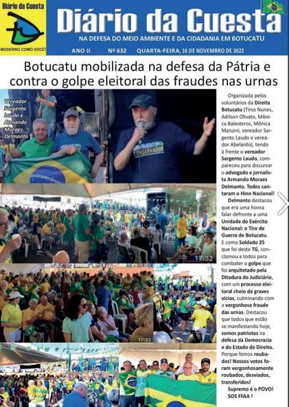 – A população acampou defronte dos Quartéis, das Unidades Militares e das sedes de Tiro de Guerra espalhados por todo o país... manchete estampada pelo Diário da Cuesta, na cidade de Botucatu, mostra toda essa mobilização patriótica e pacífica. É registro histórico...