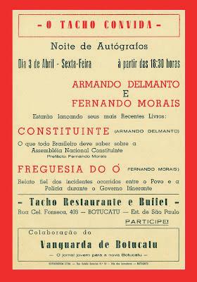 Na companhia do deputado estadual Fernando Morais, jornalista e escritor, participamos de inúmeras conferências para universitários das principais cidades do interior do Estado sobre a necessidade da convocação de uma Constituinte para restituir, ao Brasil, o regime democrático em toda a sua plenitude.