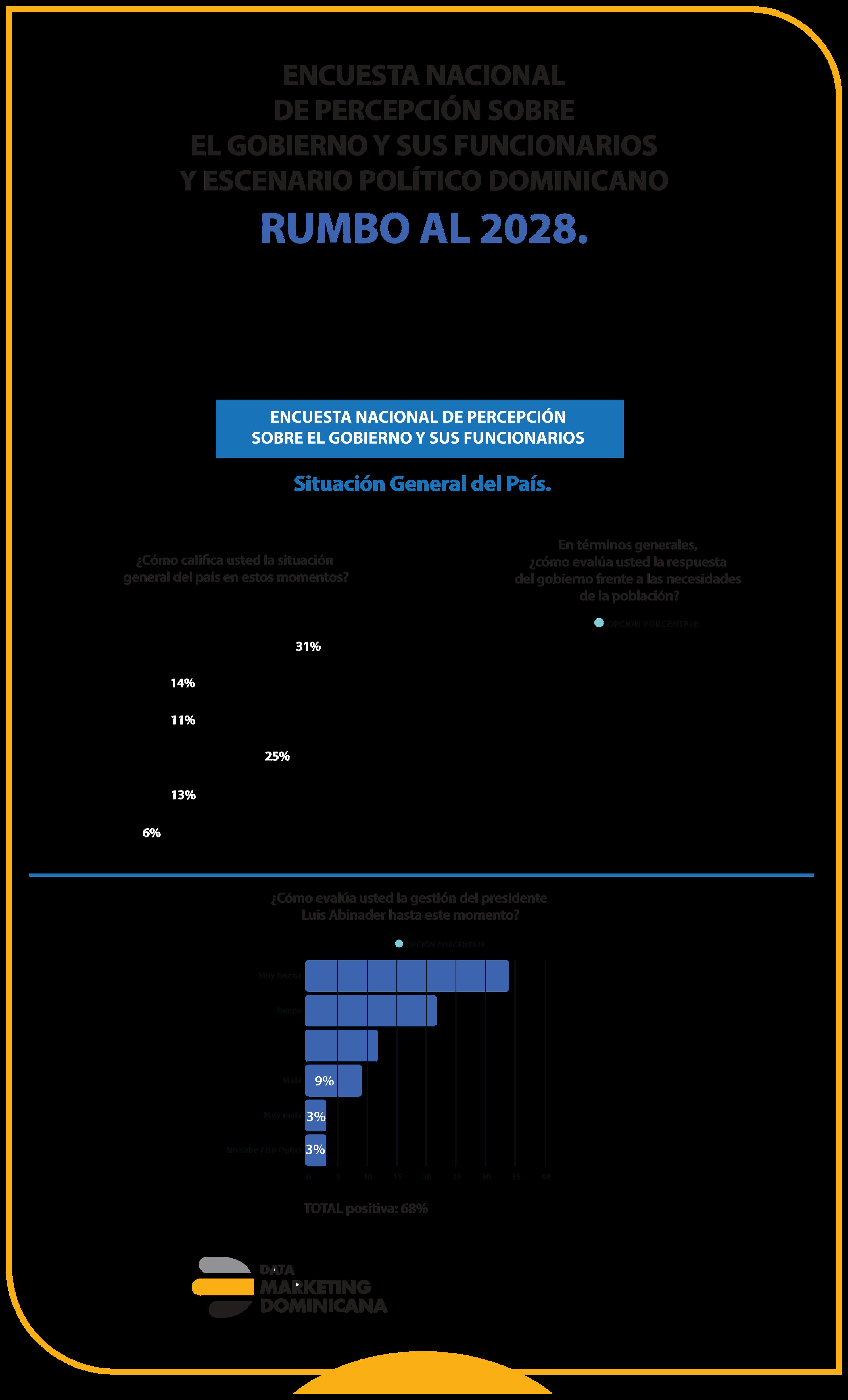 El estudio forma parte de la serie de análisis de opinión pública que Diario del País está presentando esta semana en alianza con Data Marketing Dominicana En las próximas entregas se abordarán temas como la percepción de los partidos políticos la intención de voto y los principales problemas que afectan a las familias dominicanas