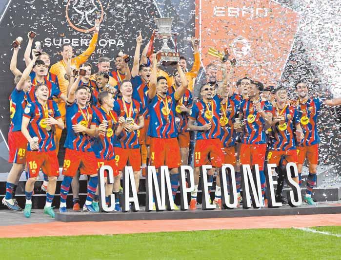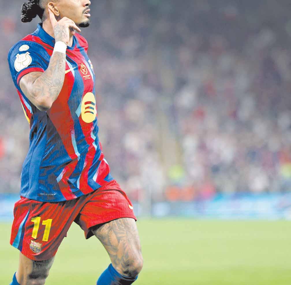 El club catalán reafirmó ayer su dominio en Arabia Saudita al vencer al Real Madrid en una final intensa. Ante más de 60 mil aficionados en Yeda, el equipo de Hansi Flick, liderado por un Raphinha decisivo, levantó su 16ª Supercopa de España y la segunda de manera consecutiva. ARENA / 11