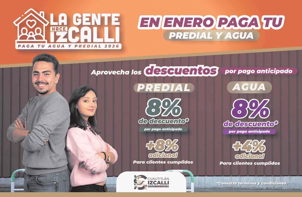 Los descuentos aprobados son aplicables en el pago anual 2026, alcanzando durante el mes de enero un descuento del 8% por pago anticipado y el 4% adicional a usuarios que durante los dos últimos años han cumplido en tiempo y forma; en febrero el beneficio es del 6% y 2%, respectivamente; mientras que para marzo es del 4%. Además, durante la Tercera Sesión Extraordinaria de Cabildo se aprobó una bonificación de hasta 38% a grupos vulnerables, entre los que se encuentran personas pensionadas, jubiladas, viudas, en estado de gestación o lactancia, solteras con dependientes económicos, así como quienes presentan una incapacidad permanente total.