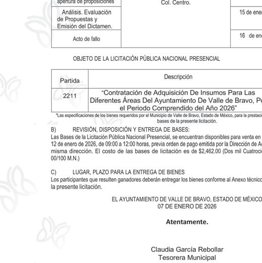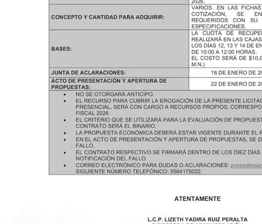 Aunque, precisó que tras un “análisis técnico, administrativo y legal” de las propuestas, el 26 de diciembre del año pasado “se emitió el Acto de fallo” mediante el cual la licitación fue declarada “desierta”, al no cumplirse los re-