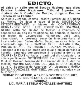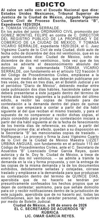 DIARIO DE MÉXICO, diario de información general, es editado por Editorial DDM, S.A. de C.V., con reserva de derechos al uso exclusivo número 04-2001052413165300-101. Certificado de licitud de Título 06788 y Certificado de Licitud de contenido 07299, otorgados por la comisión calificadora de publicaciones y revistas ilustradas de la secretaria de Gobernación. Editor responsable Consuelo Oyuki Zapata Torres. Domicilio de Publicación, Calle Chimalpopoca #38, Colonia Obrera, CP 06800, alcaldía Cuauhtémoc, CDMX. Impreso en Cía. Periodística Esto, S.A. de C.V. con dirección en Guillermo Prieto #7, Colonia San Rafael, CP 06470, Alcaldía Cuauhtémoc, CDMX. Distribuidor del periodico: Distribuidora Dabeli SA de CV (Arredondo e Hijos ) Iturbide 18-D, Colonia Centro Alcaldia Cuauhtemoc, CP 06040, CDMX. Periodicidad de la publicación: Lunes a Viernes.
