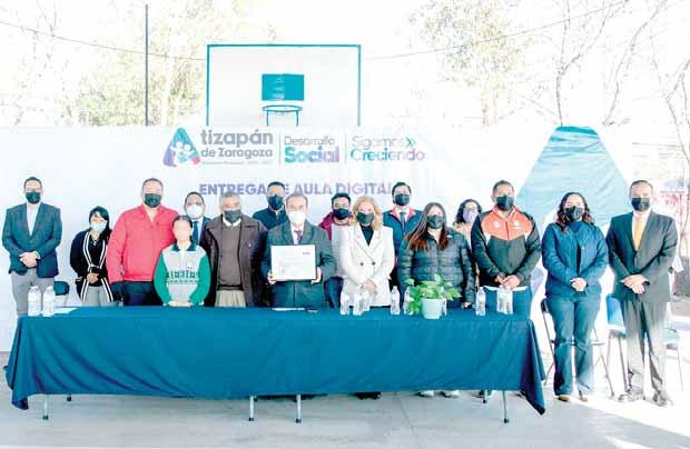 Atizapán.- Al hacer entrega del aula digital de la primaria “Carlos Hank González”, el presidente municipal, Pedro Rodríguez Villegas resaltó que las cinco placas que este plantel tiene en sus instalaciones, es muestra del compromiso que se tiene con la formación y educación de las niñas y niños del municipio.