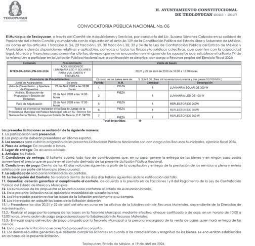 SE CONVOCAN POSTORES. Ciudad de México, a 10 de Marzo del año 2026.