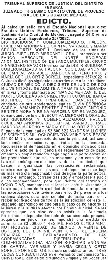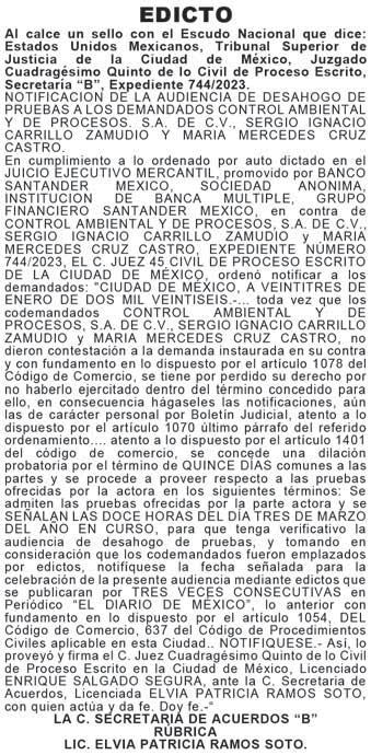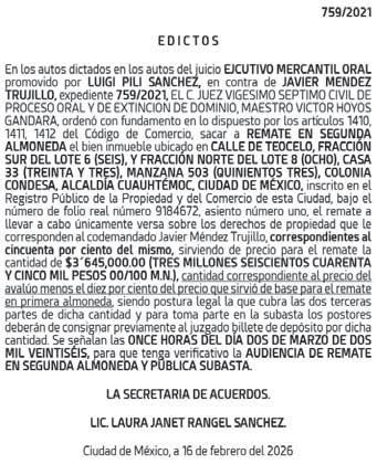 DIARIO DE MÉXICO, diario de información general, es editado por Editorial DDM, S.A. de C.V., con reserva de derechos al uso exclusivo número 04-2001052413165300-101. Certificado de licitud de Título 06788 y Certificado de Licitud de contenido 07299, otorgados por la comisión calificadora de publicaciones y revistas ilustradas de la secretaria de Gobernación. Editor responsable Consuelo Oyuki Zapata Torres. Domicilio de Publicación, Calle Chimalpopoca #38, Colonia Obrera, CP 06800, alcaldía Cuauhtémoc, CDMX. Impreso en Cía. Periodística Esto, S.A. de C.V. con dirección en Guillermo Prieto #7, Colonia San Rafael, CP 06470, Alcaldía Cuauhtémoc, CDMX. Distribuidor del periodico: Distribuidora Dabeli SA de CV (Arredondo e Hijos ) Iturbide 18-D, Colonia Centro Alcaldia Cuauhtemoc, CP 06040, CDMX. Periodicidad de la publicación: Lunes a Viernes.