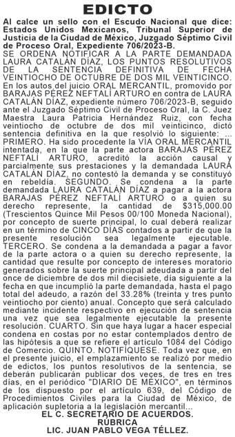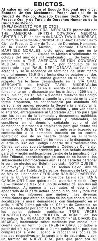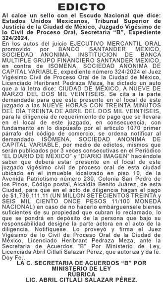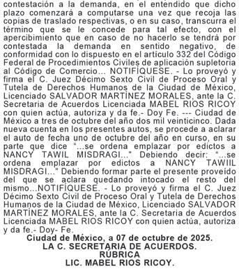 DIARIO DE MÉXICO, diario de información general, es editado por Editorial DDM, S.A. de C.V., con reserva de derechos al uso exclusivo número 04-2001052413165300-101. Certificado de licitud de Título 06788 y Certificado de Licitud de contenido 07299, otorgados por la comisión calificadora de publicaciones y revistas ilustradas de la secretaria de Gobernación. Editor responsable Consuelo Oyuki Zapata Torres. Domicilio de Publicación, Calle Chimalpopoca #38, Colonia Obrera, CP 06800, alcaldía Cuauhtémoc, CDMX. Impreso en Cía. Periodística Esto, S.A. de C.V. con dirección en Guillermo Prieto #7, Colonia San Rafael, CP 06470, Alcaldía Cuauhtémoc, CDMX. Distribuidor del periodico: Distribuidora Dabeli SA de CV (Arredondo e Hijos ) Iturbide 18-D, Colonia Centro Alcaldia Cuauhtemoc, CP 06040, CDMX. Periodicidad de la publicación: Lunes a Viernes.