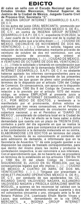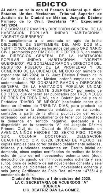 DIARIO DE MÉXICO, diario de información general, es editado por Editorial DDM, S.A. de C.V., con reserva de derechos al uso exclusivo número 04-2001052413165300-101. Certificado de licitud de Título 06788 y Certificado de Licitud de contenido 07299, otorgados por la comisión calificadora de publicaciones y revistas ilustradas de la secretaria de Gobernación. Editor responsable Consuelo Oyuki Zapata Torres. Domicilio de Publicación, Calle Chimalpopoca #38, Colonia Obrera, CP 06800, alcaldía Cuauhtémoc, CDMX. Impreso en Cía. Periodística Esto, S.A. de C.V. con dirección en Guillermo Prieto #7, Colonia San Rafael, CP 06470, Alcaldía Cuauhtémoc, CDMX. Distribuidor del periodico: Distribuidora Dabeli SA de CV (Arredondo e Hijos ) Iturbide 18-D, Colonia Centro Alcaldia Cuauhtemoc, CP 06040, CDMX. Periodicidad de la publicación: Lunes a Viernes.