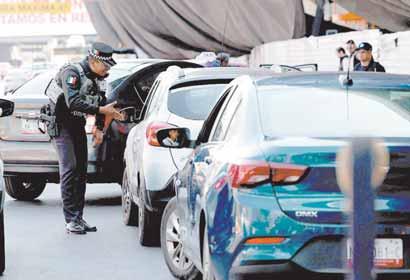 Oficiales de la corporación pusieron en marcha desde ayer dispositivos de seguridad para identificar y frenar la operación de vehículos de plataformas digitales en áreas federales, ello como parte de los acuerdos entre autoridades del Aeropuerto Internacional de la Ciudad de México y permisionarios de taxis. MICIUDAD / EDICIÓN WEB
