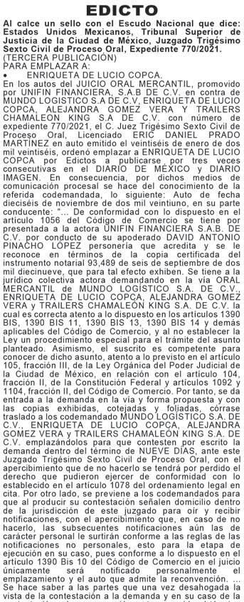 DIARIO DE MÉXICO, diario de información general, es editado por Editorial DDM, S.A. de C.V., con reserva de derechos al uso exclusivo número 04-2001052413165300-101. Certificado de licitud de Título 06788 y Certificado de Licitud de contenido 07299, otorgados por la comisión calificadora de publicaciones y revistas ilustradas de la secretaria de Gobernación. Editor responsable Consuelo Oyuki Zapata Torres. Domicilio de Publicación, Calle Chimalpopoca #38, Colonia Obrera, CP 06800, alcaldía Cuauhtémoc, CDMX. Impreso en Cía. Periodística Esto, S.A. de C.V. con dirección en Guillermo Prieto #7, Colonia San Rafael, CP 06470, Alcaldía Cuauhtémoc, CDMX. Distribuidor del periodico: Distribuidora Dabeli SA de CV (Arredondo e Hijos ) Iturbide 18-D, Colonia Centro Alcaldia Cuauhtemoc, CP 06040, CDMX. Periodicidad de la publicación: Lunes a Viernes.