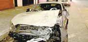 Un automovilista de un carro deportivo gris fue atacado a balazos por dos sujetos que iban en una moto, por lo que tras el atentado la víctima perdió el control y chocó contra un poste, otro carro y la unidad de sus atacantes.