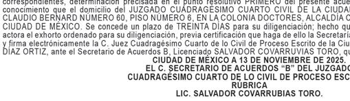 ATENTAMENTE. CIUDAD DE MÉXICO A 24 DE NOVIEMBRE DE 2025 EL C. SECRETARIO DE ACUERDOS B LIC. RAUL CALVA BALDERRAMA RÚBRICA.