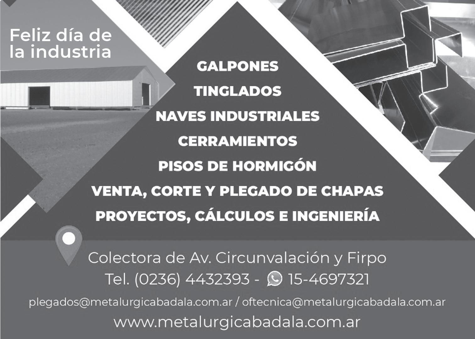 Desde sus amplias instalaciones ubicadas en Colectora de Av. Circunvalación y Firpo, se dedica a la construcciónde naves industriales, galpones, tinglados y estructuras metálicas para uso industrial, agropecuario, ganadero y comercial, entre otros; venta, corte y plegado de chapas; además, se realizan proyectos, cálculos e ingeniería.