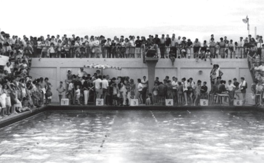 en la pileta elevada, en sus primeros años.