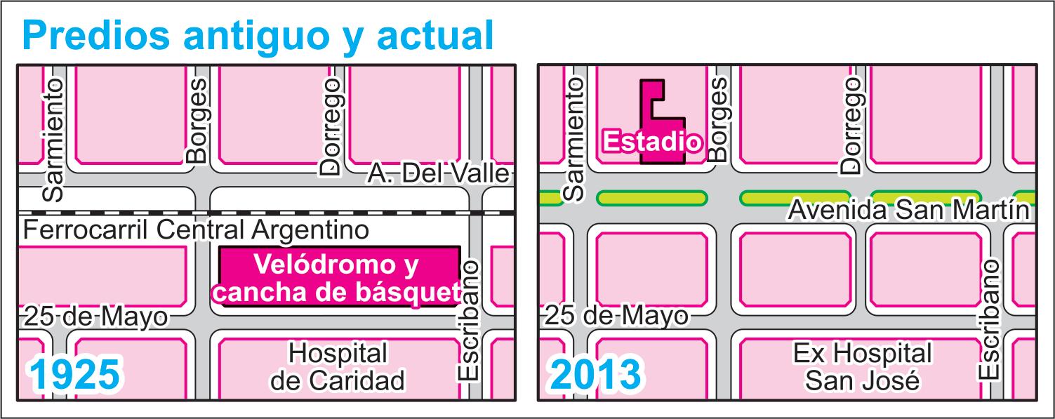 El sábado 28 de noviembre de 1931, Ciclista inauguró su cancha de básquet en la calle Aristóbulo del Valle (hoy Avenida San Martín) entre Sarmiento y Borges. Contaba con iluminación artificial y era a cielo abierto. No obstante, el terreno no pertenecía al club, por lo que adquirir los dos lotes correspondientes era un deseo de dirigentes y socios. Esto se pudo concretar el 12 de diciembre de 1942, mediante una operación materializada a través del escribano Osvaldo Blanc.