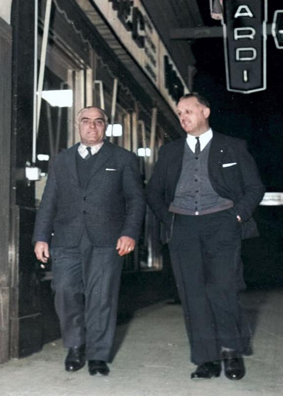 >Dos glorias del atletismo juninense: Juan Fusé y Emilio Malchiodi, caminando por el centro de Junín en 1969. >Juan Fusé (1905-1984).